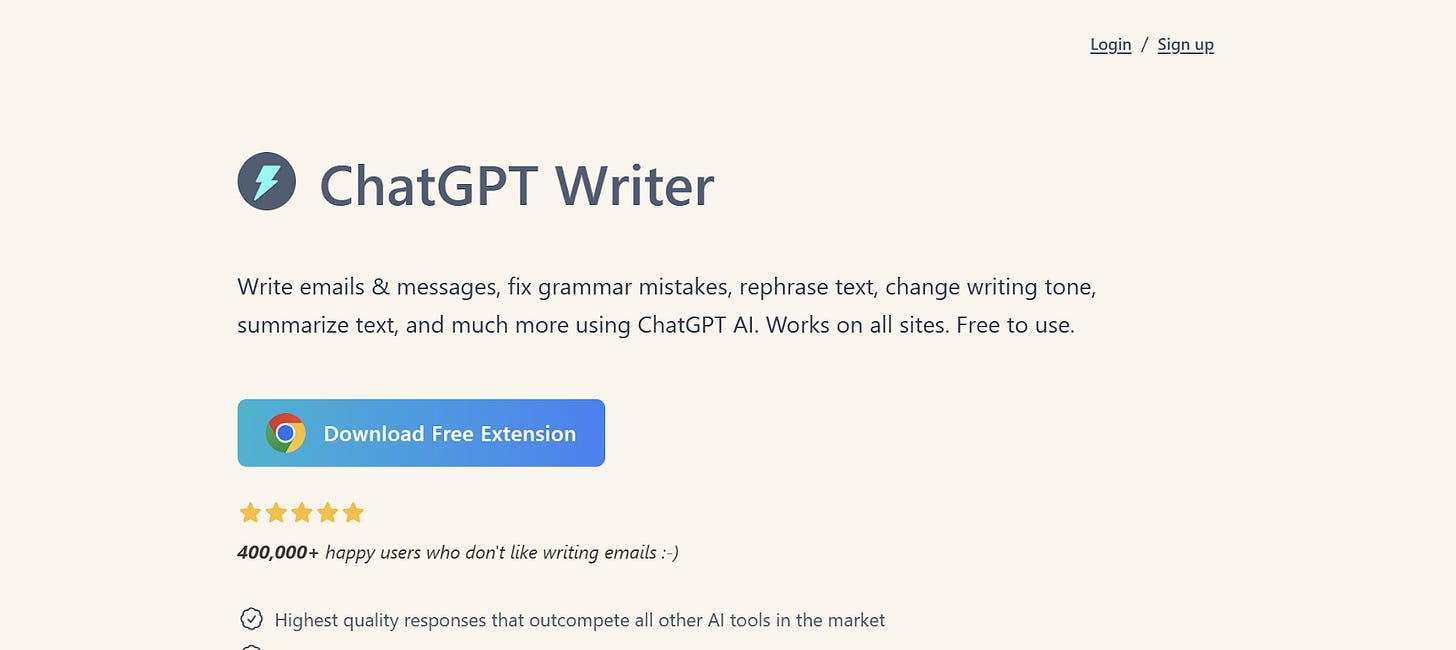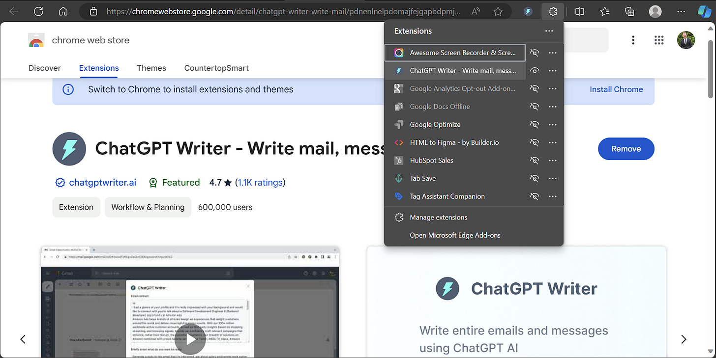 ChatGPT Writer is a browser extension created by a developer going by the mysterious moniker “Guarav”. As with most Chrome Extensions, it is incredibly easy to install and get going with.